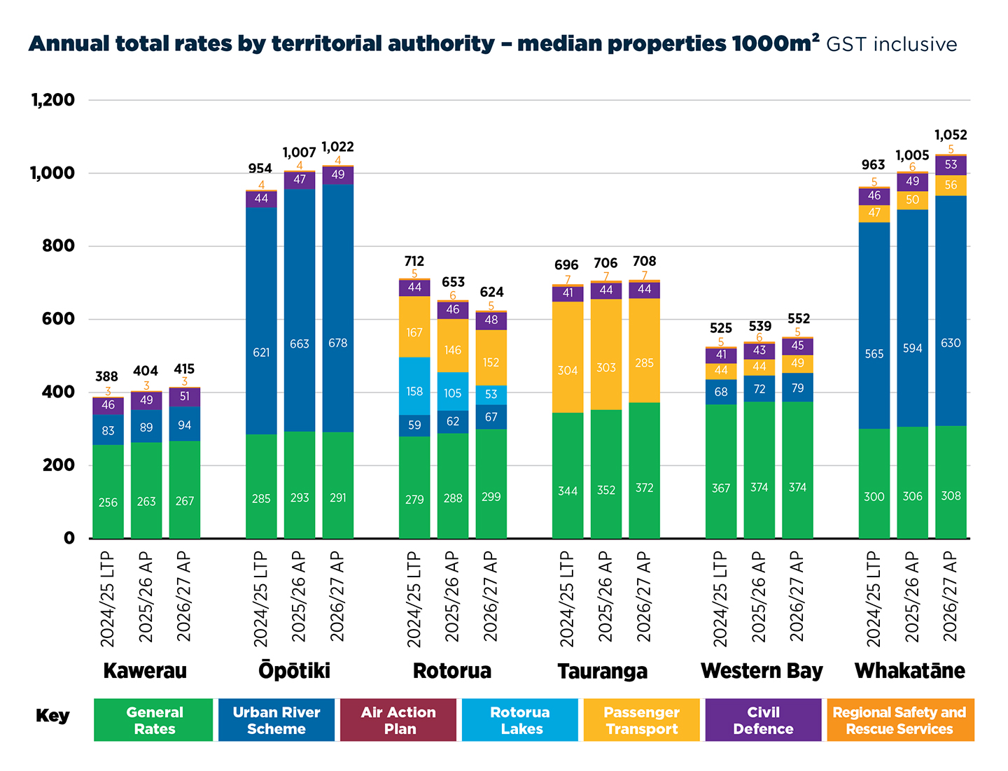 - The LTP forecast for 2026/27 (Year 3) was: General Rates +8.2%, Targeted Rates –1.1%.