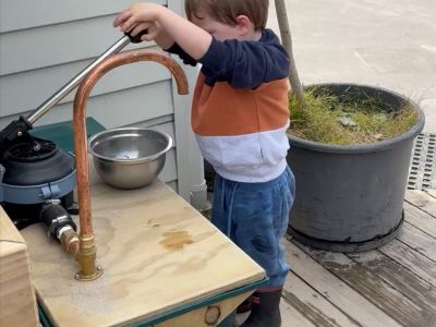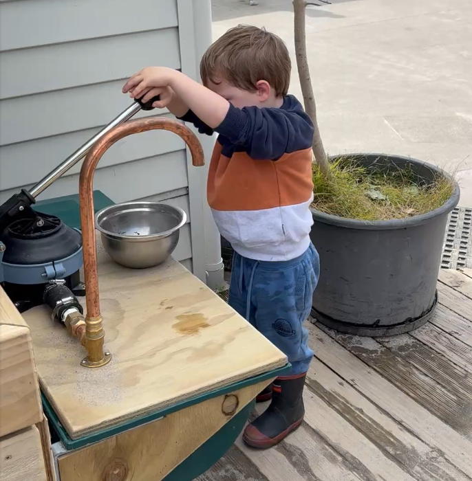 OPEYS All Day Kindergarten installed a rainwater tank with a hand pump and water level gauge so tamariki can be mindful of how much water they use.