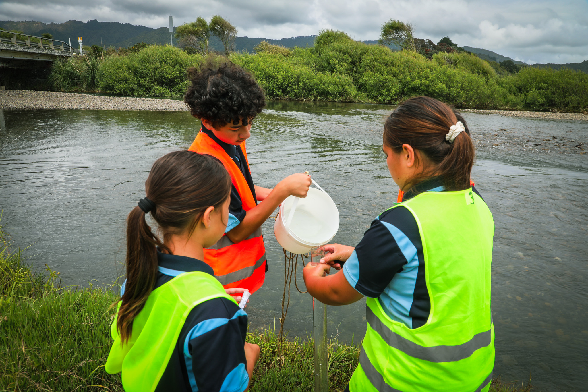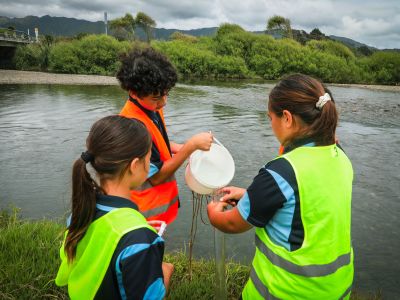 Climate kaitiaki from Te Kura o Tōrere conduct environmental monitoring.