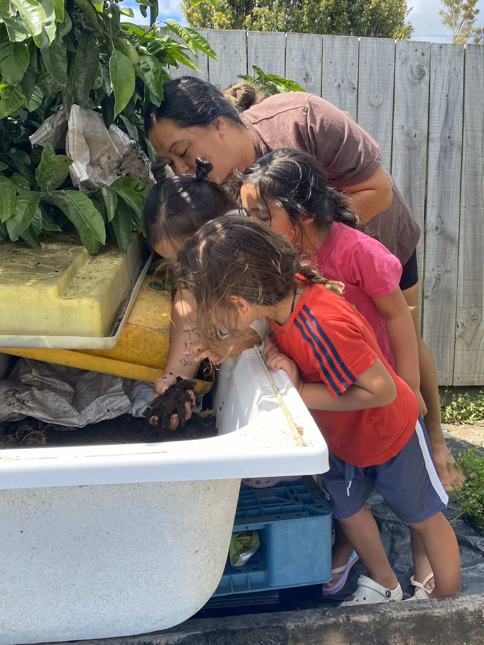 Ngāti Hangarau Kōhanga Reo created a new maara kai and upcycled an old bath to create a worm farm.